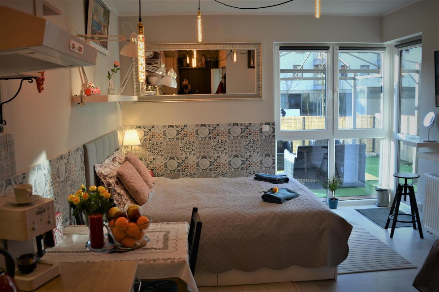 Apartament z 1 sypialnią. The air-conditioned apartment has 1 bedroom and 1 bathroom with a shower and a hairdryer. In the well-equipped kitchenette, guests will find a stovetop, a refrigerator, kitchenware and a microwave. The unit features a washing machine, garden views, a terrace and winechampagne is available for guests. The unit has 2 beds. Apartament - 3 osobowy. Powierzchnia pokoju ok.: 25 mkw.