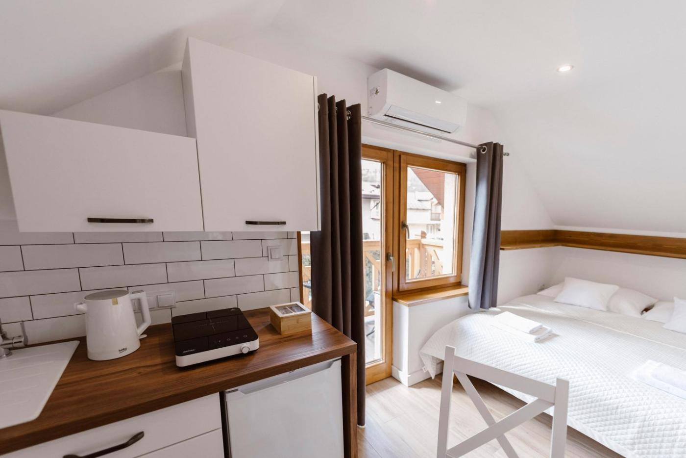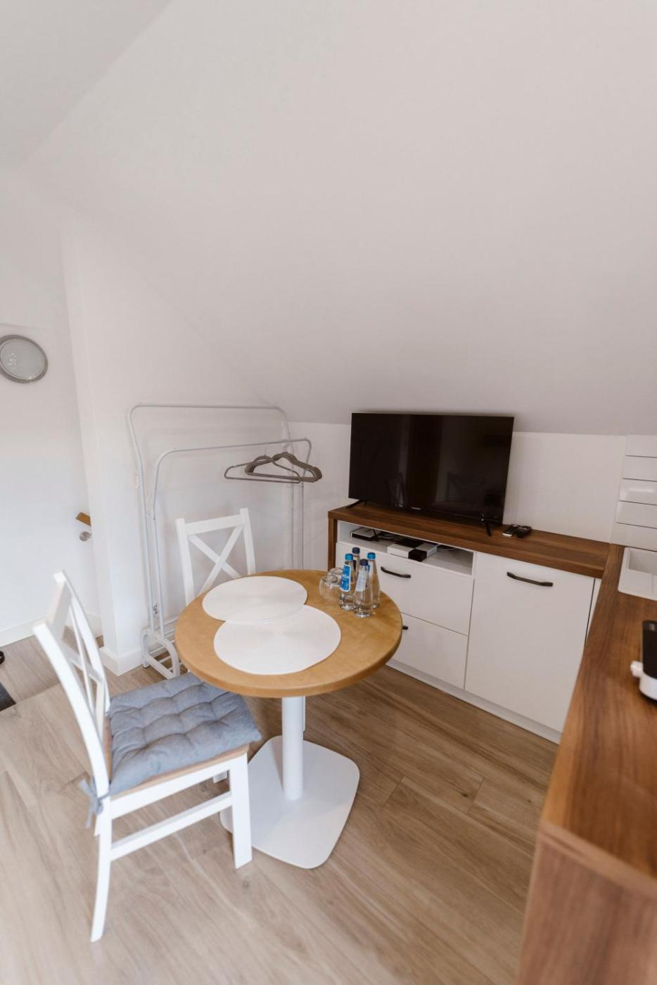 Apartament z 1 sypialnią. Featuring a private entrance, this air-conditioned apartment is comprised of a kitchenette, 1 bedroom and 1 bathroom with a walk-in shower and a hairdryer. The well-fitted kitchenette features a stovetop, a refrigerator and kitchenware. Boasting a balcony, this apartment also offers a tea and coffee maker, a dining area and a flat-screen TV with satellite channels. The unit offers 1 bed. Apartament - 2 osobowy. Powierzchnia pokoju ok.: 15 mkw.
