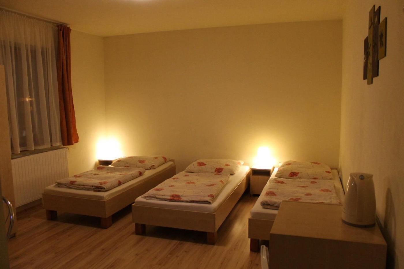 Pokój Dwuosobowy typu Deluxe (2 osoby dorosłe + 1 dziecko). The room has a double bed (140x200cm) and a sofa bed, bathroom, LED 40" TV (equipped with HDMI cable - so you can easily connect your laptop), fridge, kettle and tableware. Pokój Dwuosobowy - 3 osobowy. Powierzchnia pokoju ok.: 21 mkw. ;