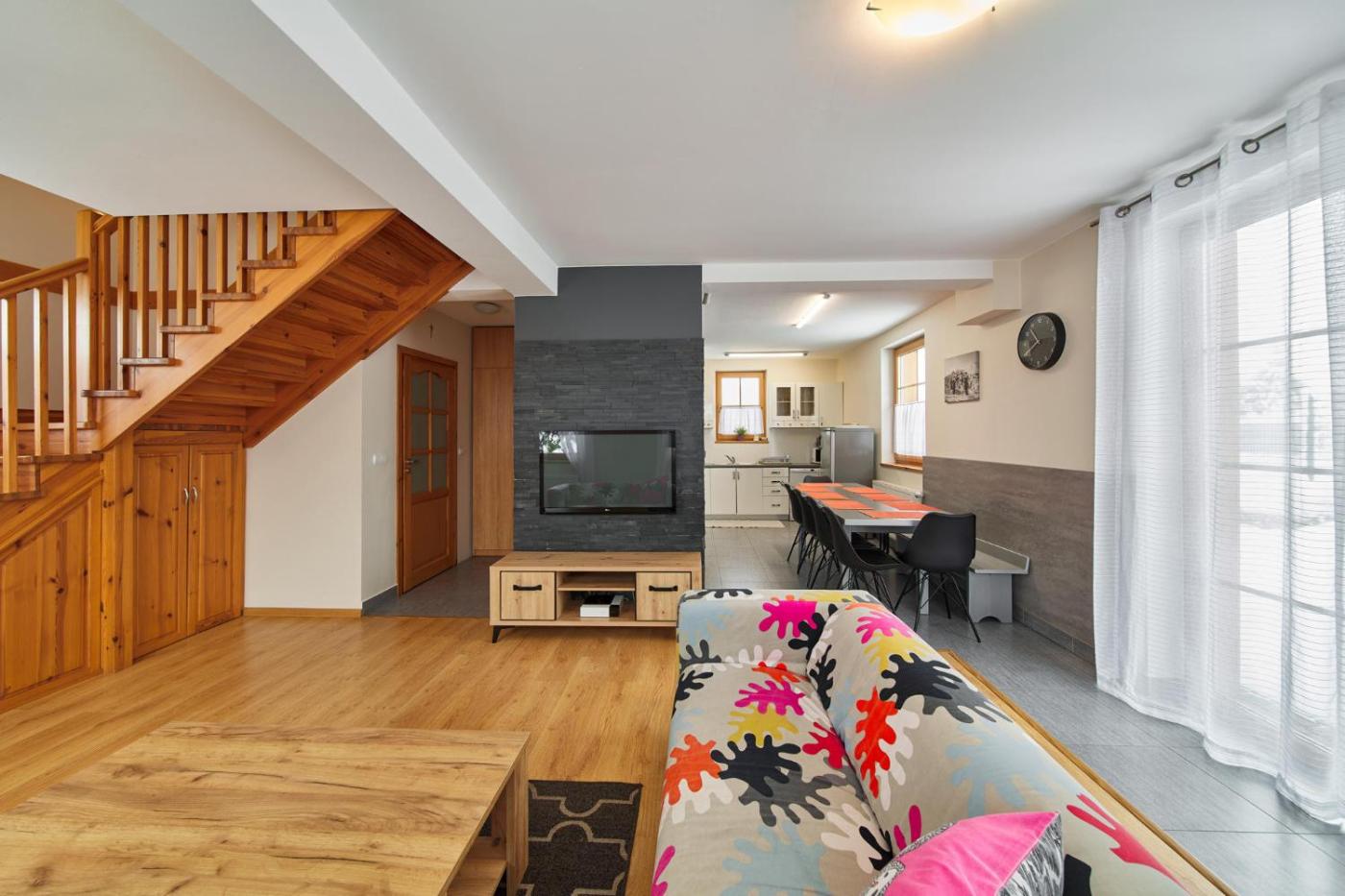 Dom z 4 sypialniami. Boasting a private entrance, this holiday home also features 4 bedrooms, a seating area and 2 bathrooms with a bath and a shower. Guests will find a stovetop, a refrigerator, a dishwasher and kitchenware in the well-equipped kitchen. The holiday home also comes with a barbecue. Featuring a terrace with mountain views, this holiday home also features soundproof walls and a flat-screen TV. The unit has 9 beds. Dom wakacyjny - 13 osobowy. Powierzchnia pokoju ok.: 105 mkw.